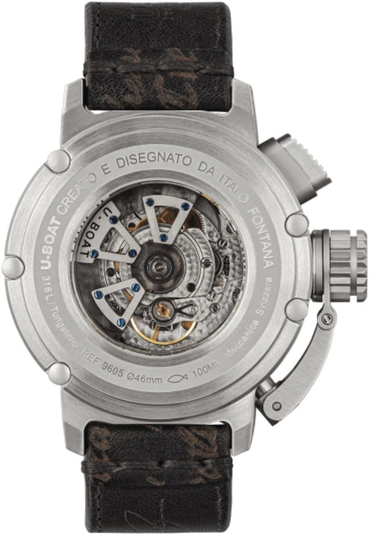 Chimera 46Mm Ss Black Mens Analog Automatic Watch with Leather Bracelet 9605