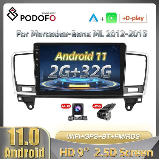 PODOFO Newใ2+32GใใFor Mercedes-Benz ML 2012-2015ใ2Din Android 11 Car Stereo Radio 9'' HD Touch Screen Car MP5 Player Autoradio GPS Support Hifi WIFI Bluetooth Mirror Link FM/RDS Radio with AHD Camera& DVR