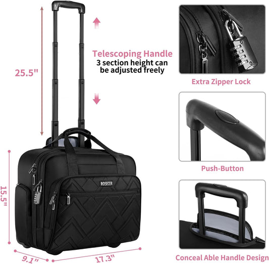 Rolling Laptop Bag Women, Briefcase for 17.3 Inch with Wheels Computer Case Work Travel Business