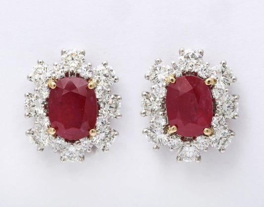 Elegant 7.47ct Intense Red Oval Ruby and Diamond Clip-on Earrings