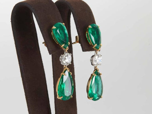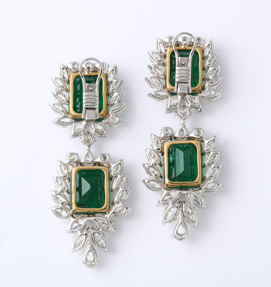 Luxury 38ct Emerald and 22ct Diamond Platinum Drop Dangle Earrings