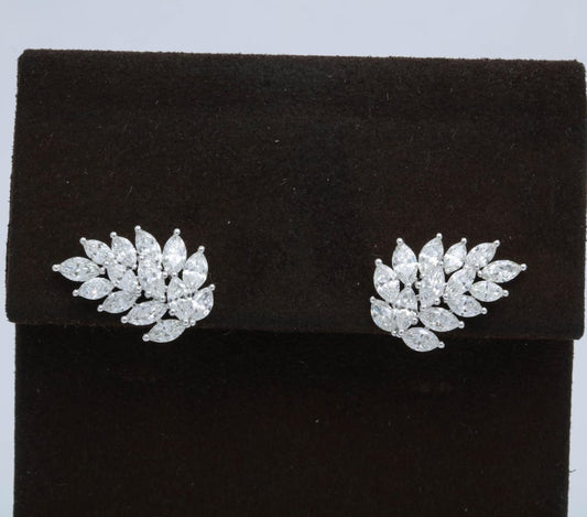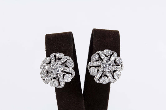 18k White Gold 4.49ct Diamond Flower Petal Stud Earrings