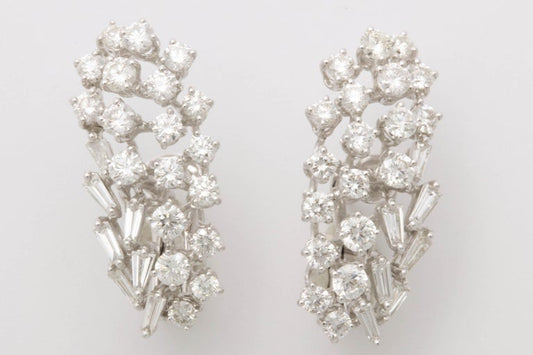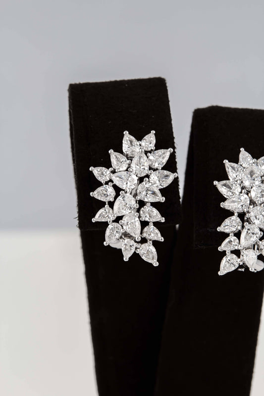 Elegant 18k White Gold Diamond Cluster Climber Clip-on Earrings