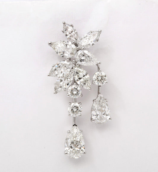 Luxury 8.29 Carat Pear Diamond Cluster Platinum Clip-On Earrings