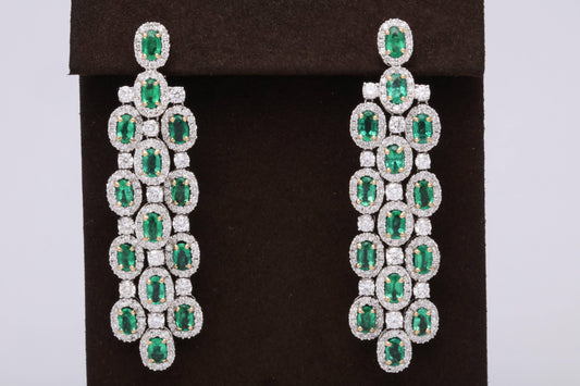 Exquisite 18k White Gold Green Emerald and Diamond Chandelier Earrings