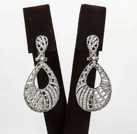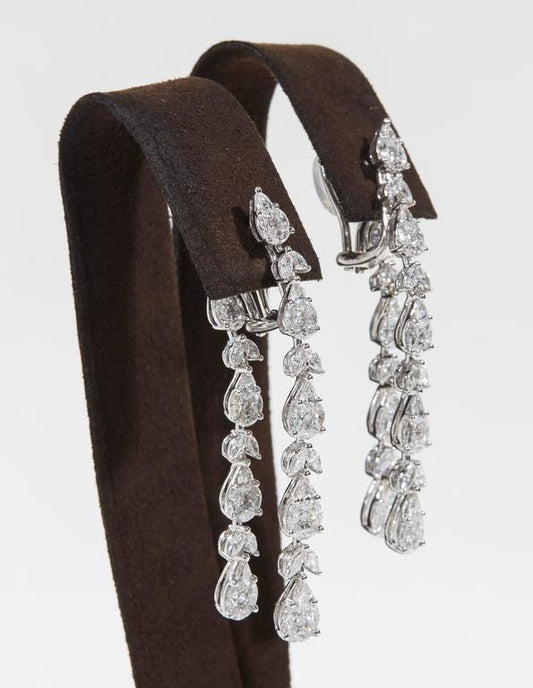 Elegant 15.60 Carat Diamond 18k White Gold Teardrop Dangle Earrings