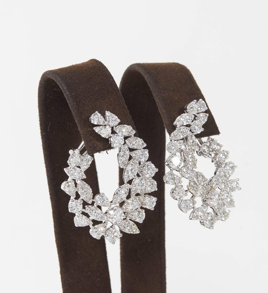 Multi Shape Diamond Swirl 8.43ct Diamond 18k White Gold Earrings