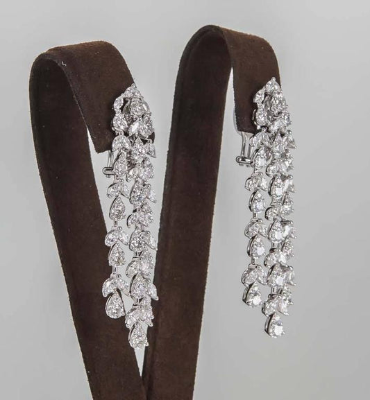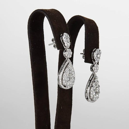 Exquisite 4.14 Carat Diamond Cluster Dangle Earrings 18k White Gold