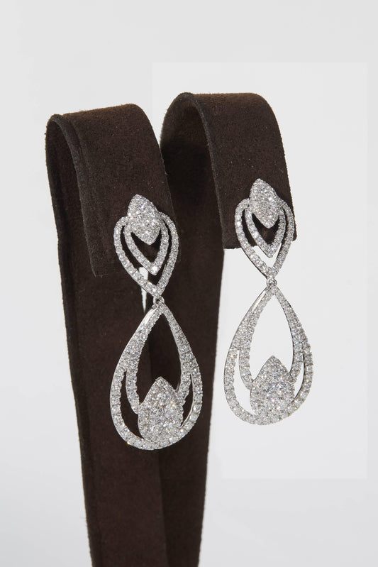 Diamond Scene 15.49ct Pear Shaped Diamond White Gold Swirl Earrings