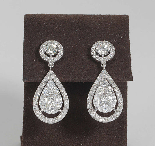 Elegant 18k White Gold 3.55ct Diamond Illusion Dangle Drop Earrings