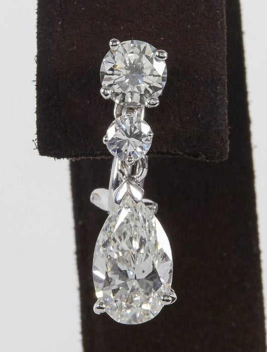 Elegant 3.50 Carat Pear Shaped Diamond 14k Gold Dangle Earrings