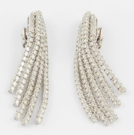Stunning 18.41 Carat Diamond 18k White Gold Waterfall Chandelier Earrings