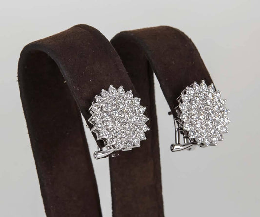 Elegant 18k White Gold 3.57ct Diamond Cluster Clip-On Earrings