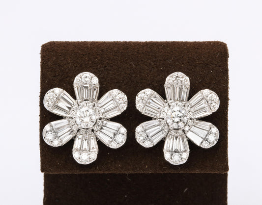 Elegant 18k White Gold Diamond Flower Stud Earrings 3.16ct