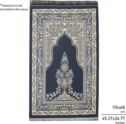Prayer Rug - Muslim Prayer Rug - Prayer Mat Travel Bag and Prayer Beads - Muslim Gifts for Men Women and Kids (Darkblue 2