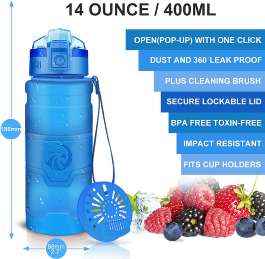 Kids Water Bottle, BPA Free Tritan 13.5Oz Water Bottle with Leakproof Lid, Straw & Carrying Loop for Toddlers