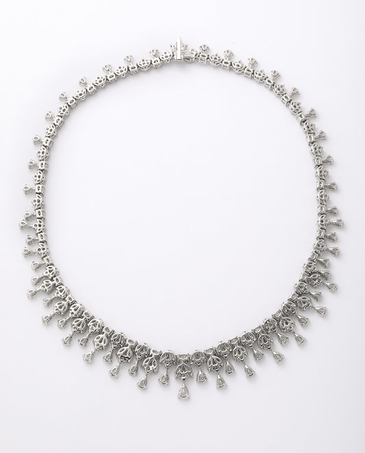 Vintage 25 Carat Multi-Cut Diamond Platinum Choker Necklace 16"