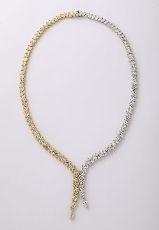 Exquisite 40 Carat Yellow and White Diamond Marquise Drop Necklace