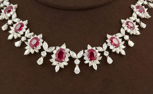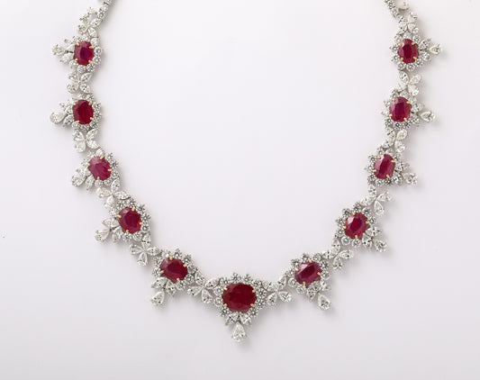 Exquisite 31ct Intense Red Ruby and 48ct Diamond Platinum Choker