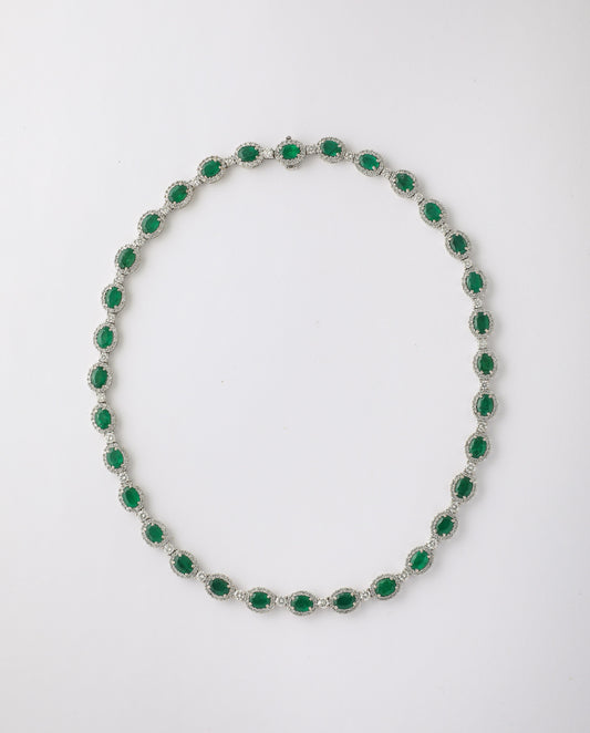 Exquisite 23.45ct Oval Emerald and 18.65ct Diamond 18k Gold Necklace
