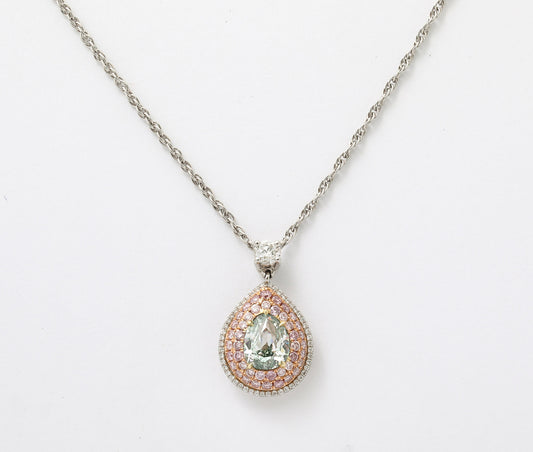 GIA Certified 1.06ct Fancy Intense Green Pear Diamond Pendant Necklace