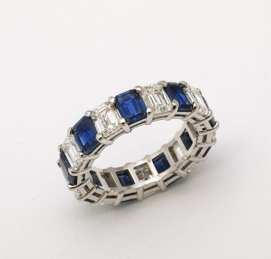 9 Carat Emerald Cut Diamond Eternity Band in Platinum Mounting