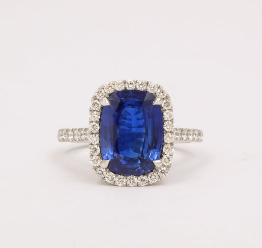 GIA Certified 8.04 Carat Cushion Cut Blue Sapphire Diamond Ring