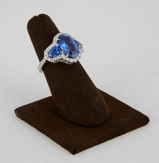 4.54ct Intense Blue Ceylon Sapphire Diamond 18k White Gold Ring