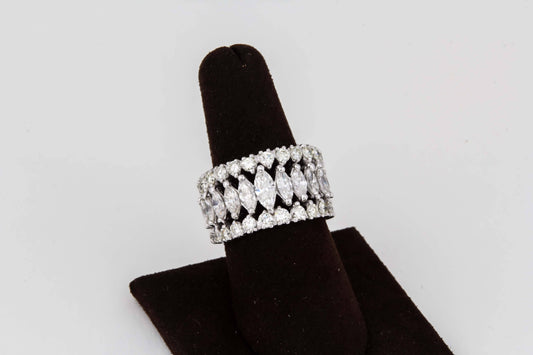 Marquise and Round Diamond Wide Graduated Eternity Band in Platinum