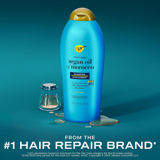Renewing + Argan Oil of Morocco Shampoo, Damage Repair Shampoo & Argan Oil to Help Strengthen & Repair Dry, Damaged Hair, Paraben-Free, Sulfate-Free Surfactants, 25.4 Fl. Oz