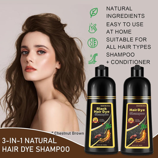 Chestnut Brown Hair Dye Shampoo 3-In-1, Instant & Long-Lasting Hair Color Shampoo in Minutes, Gray Hair Coverage for Men & Women, Natural Shampoo Hair Dye for All Hair Types