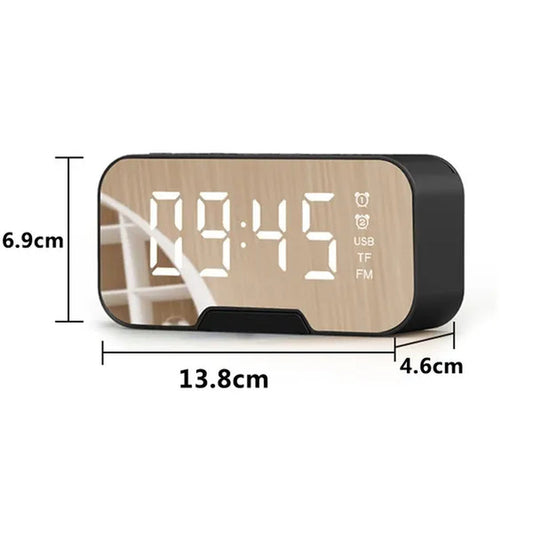 NEW Wireless Bluetooth 5.0 Speaker with Phone Holder Function Mirror LED Alarm Clock Wireless Bluetooth Speaker with FM