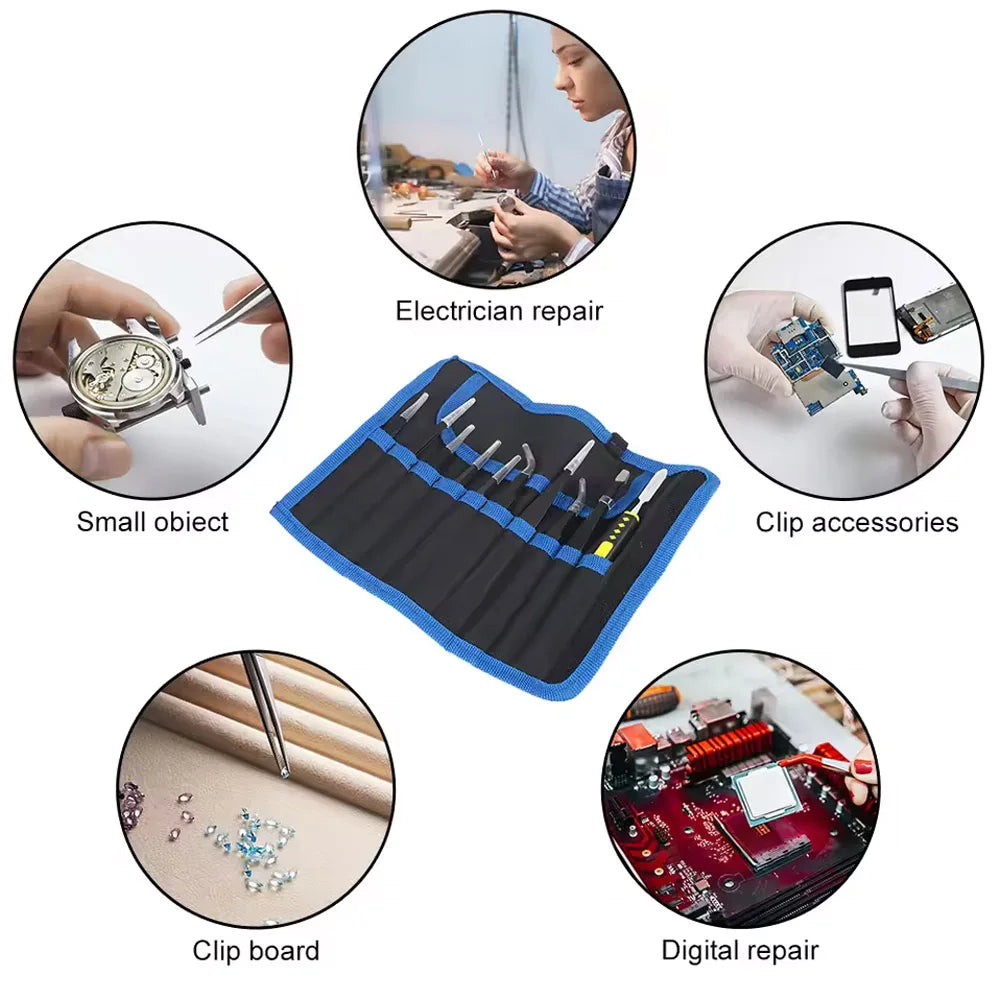 Precision tweezers are great for beading and other fine crafts, medical, computer, mobile phone, watch, glasses repair,laboratory work, cosmetic hair removal and many aspects of watch and clock repair, it is a good repair tweezer set for watchmakers and jewelers.It can also be used for manicure and other decorative work.