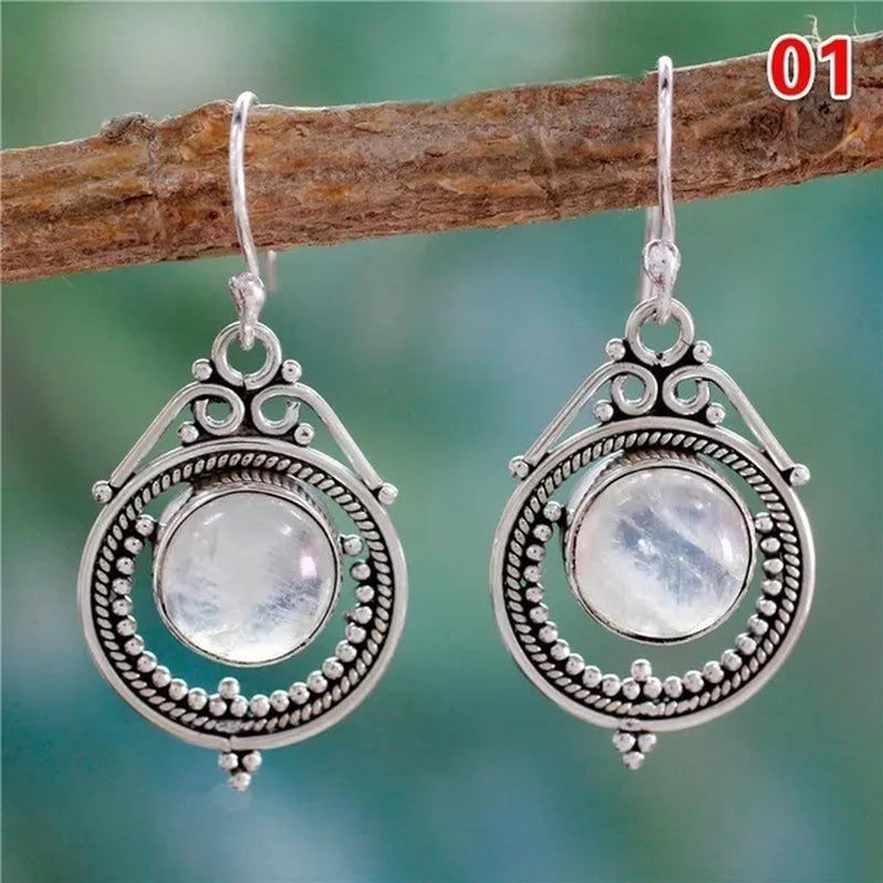 12Styles Vintage Earrings Rainbow Moonstone Earring...