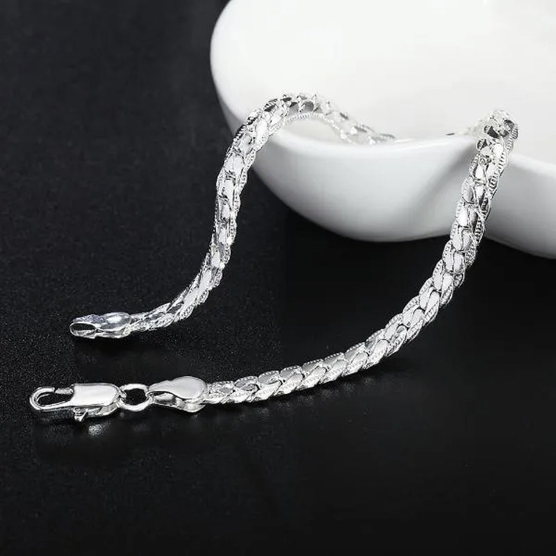 18K Gold/925 Sterling Silver Classic Flat Sideways Chain Bracelets for Women Men'S Fashion Party Wedding Jewelry Gifts