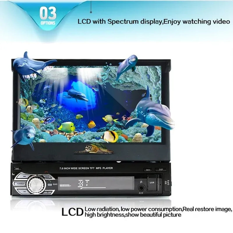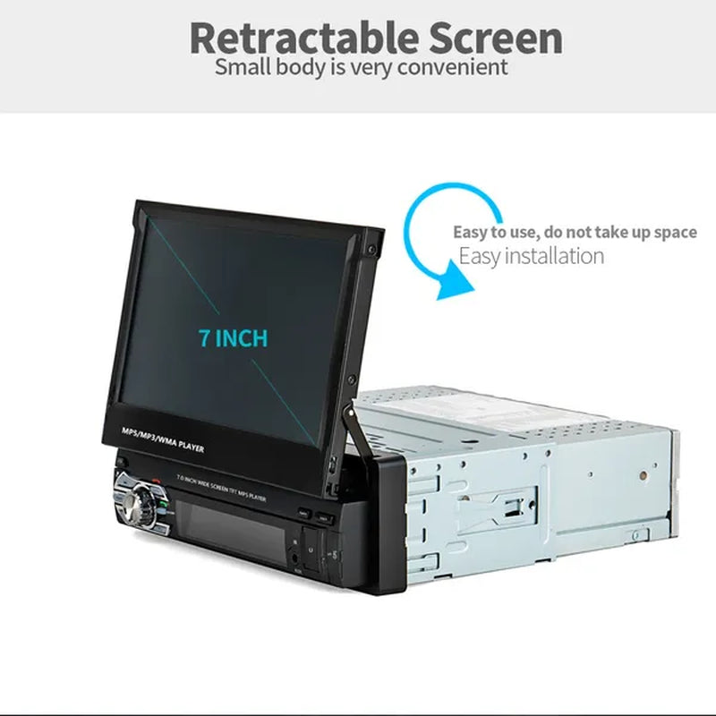 1DIN 7" HD Retractable Touch Screen Car Stereo Audio Bluetooth Car Radio Support Bluetooth/Usb/Aux/Fm/Am Mirrorlink+ SWC+ Rearview Camera (Optional)