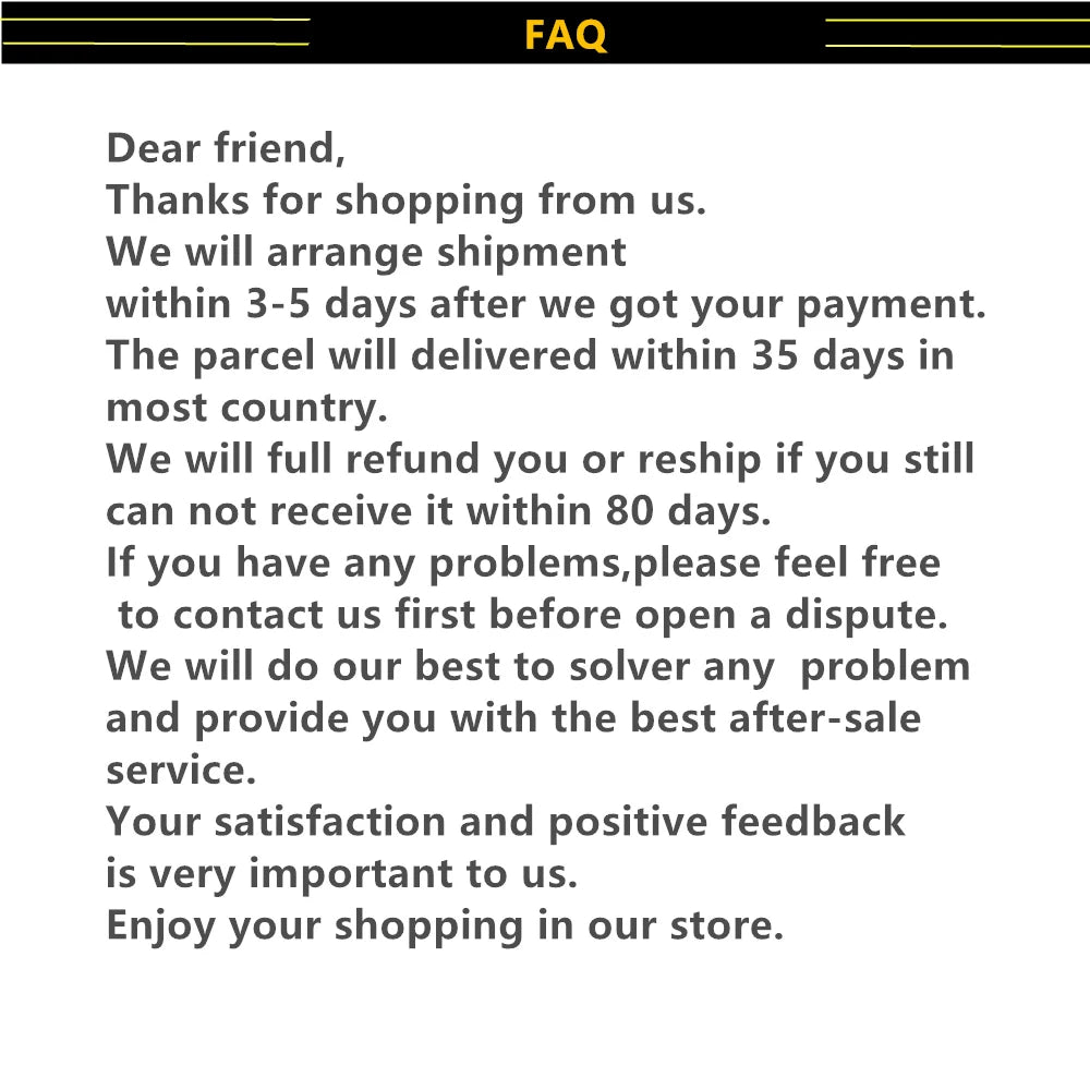 3)Dueto long shipping, the item may damage in transit, if the item damage, pls contact us firstly immediately before leave feedback, thanks for your understanding