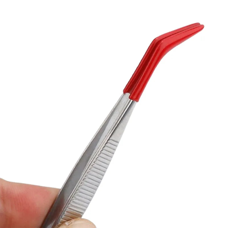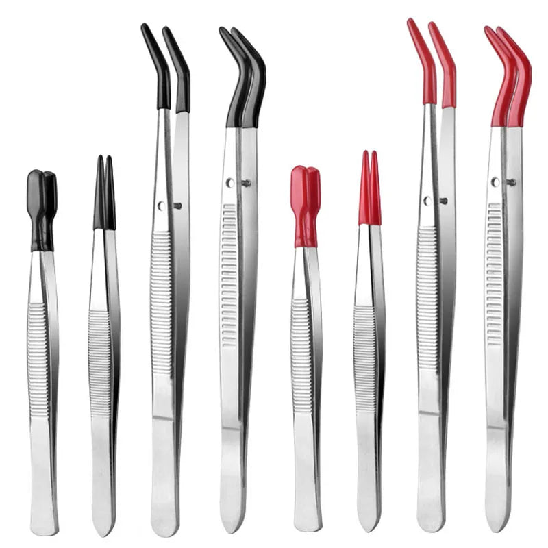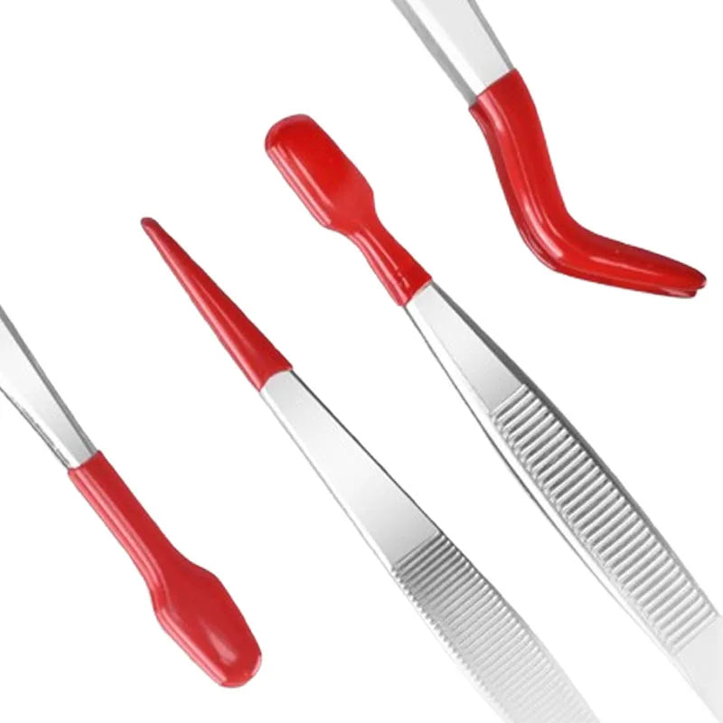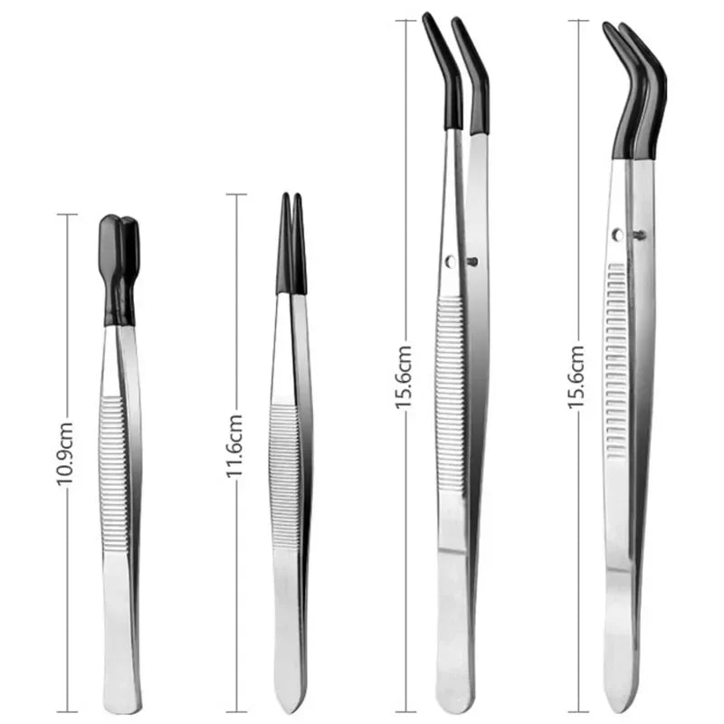 4Pcs Tweezers with Rubber Tips Set Stainless Steel Long Industrial Tweezers Bead Stamp Coin Jewelry Tweezer Clip Hand Tools