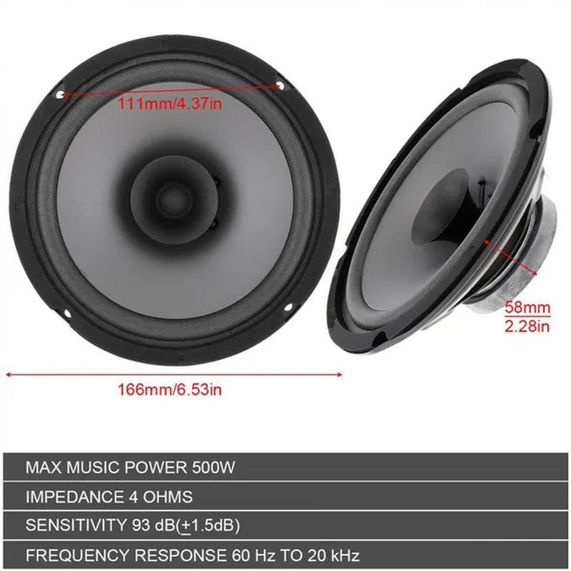 6.5 Inch 500W Car Hifi Coaxial Speaker Vehicle Door Auto Audio Music Stereo Full Range Frequency Speaker