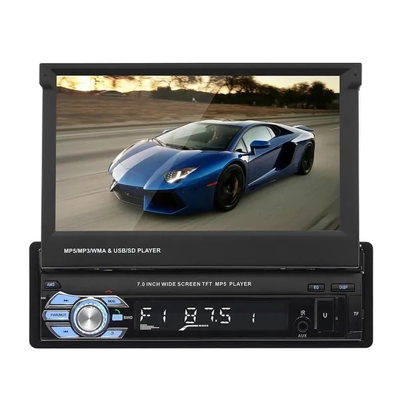 7Inch HD Retractable Touch Screen 1Din Car Stereo Audio Bluetooth Car Radio FM USB Support Mirror Link and Backup Camera(Optional)