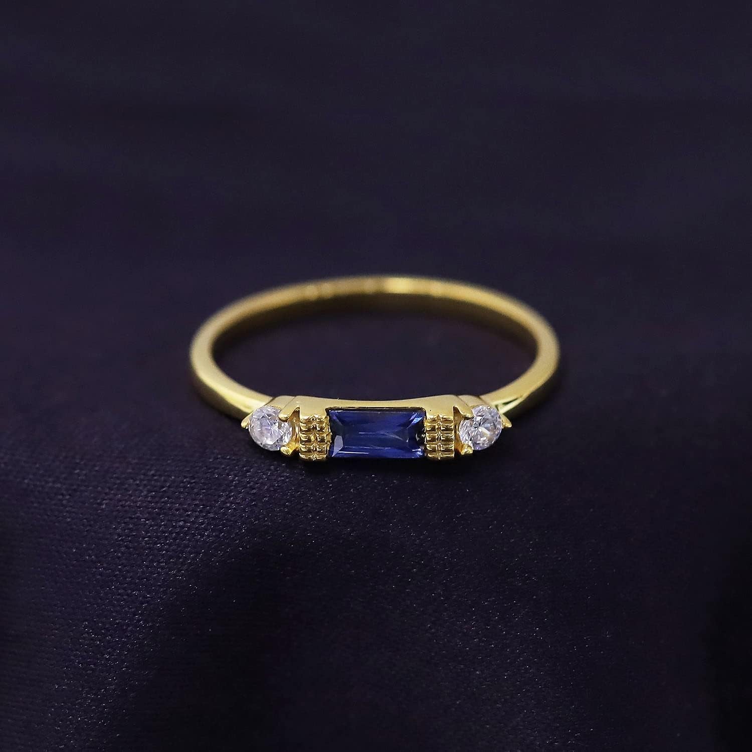 925 Sterling Silver Baguette Cut Simulated Birthstone and White Cubic Zirconia Three Stone Design Bridal Engagement Wedding Ring Jewelry, Gift for Her