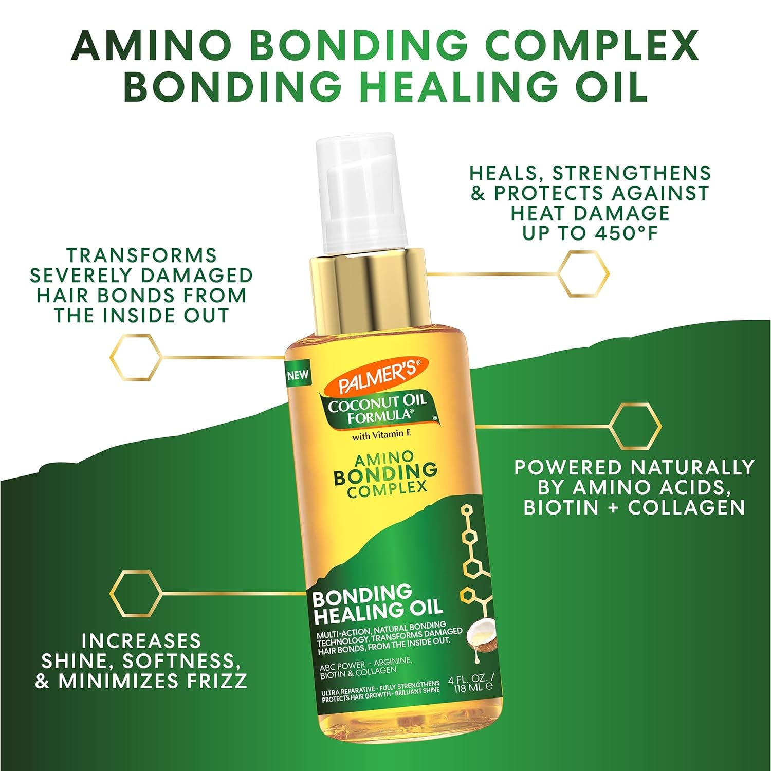 Amino Bonding Complex Hair Oil, Healing Treatment with Coconut Oil & Vitamin E, Heat Protectant, anti Frizz, Adds Shine, Strengthens & Protects Hair Growth, All Hair Types, 4 Fl Oz