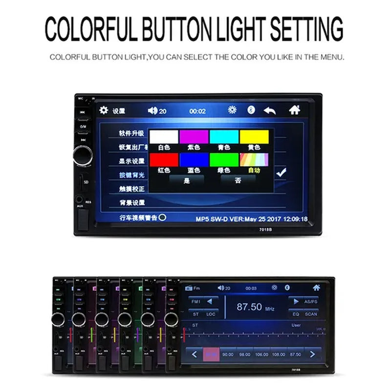 Features: 1:Bluetooth Specification: V2.0 2:Support Android/ Iphone Mirror Link,through phone's original USB line Can synchronized to the on-board screen,Android phone can realize two-way control,Iphone can realize one-way control 3:Built-in Car DVR System: it will grasp the road condition accurately after connecting with a USB camera. The records will be saved in the media card automatically and can be played on this unit directly. 4:Supports advanced audio distribution profile 5:Off time display function 6:Digital high-quality FM stereo radio 7:Preset 18 stations ( frequency: 87.5-108 MHz ) 8:Support USB / SD / MMC card reader 9:Support Audio: MP3 / WMA / APE / FLAC / WAV etc 10:Support folder function 11:Support breakpoints and ID3 Play 12:Support remote control 13:Rotary volume control 14:MP3 randomized, 10 track up / down playback 15:Electronic control volume treble, bass, balance and fader 16:Multiple EQ scene selection: Jazz, rock, pop, classical, etc. 17:Mute and loud control 18:L / R RCA audio output jacks 19:4-channel high power output ( 4 loud speaker ) 20:Support modes: BT / APE / WAV / WMA / MP3 / FM 21:The remote control battery (not included): CR2025 3V 22:Power Supply: 12V Machine(11 - 16V) 23:Language:English/Spanish/French/Portuguese/German/Italian/Russian/Turkish/Arabic/Hebrew/Polish/Japanese/Chinese 24:It supports Remote Control also Steering wheel remote control,whatever you choose,it's more convenience to using.