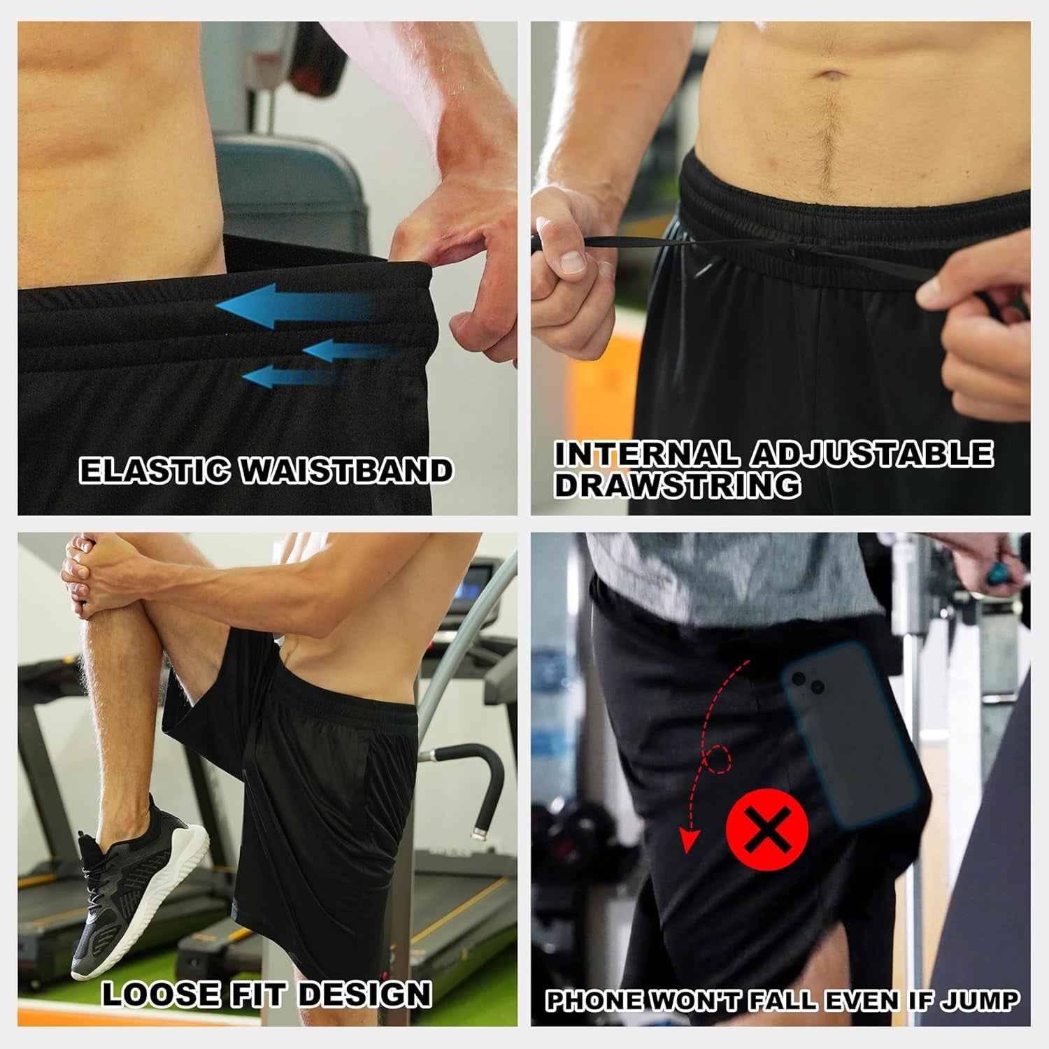 Athletic Shorts for Men with Pockets and Elastic Waistband Quick Dry Activewear