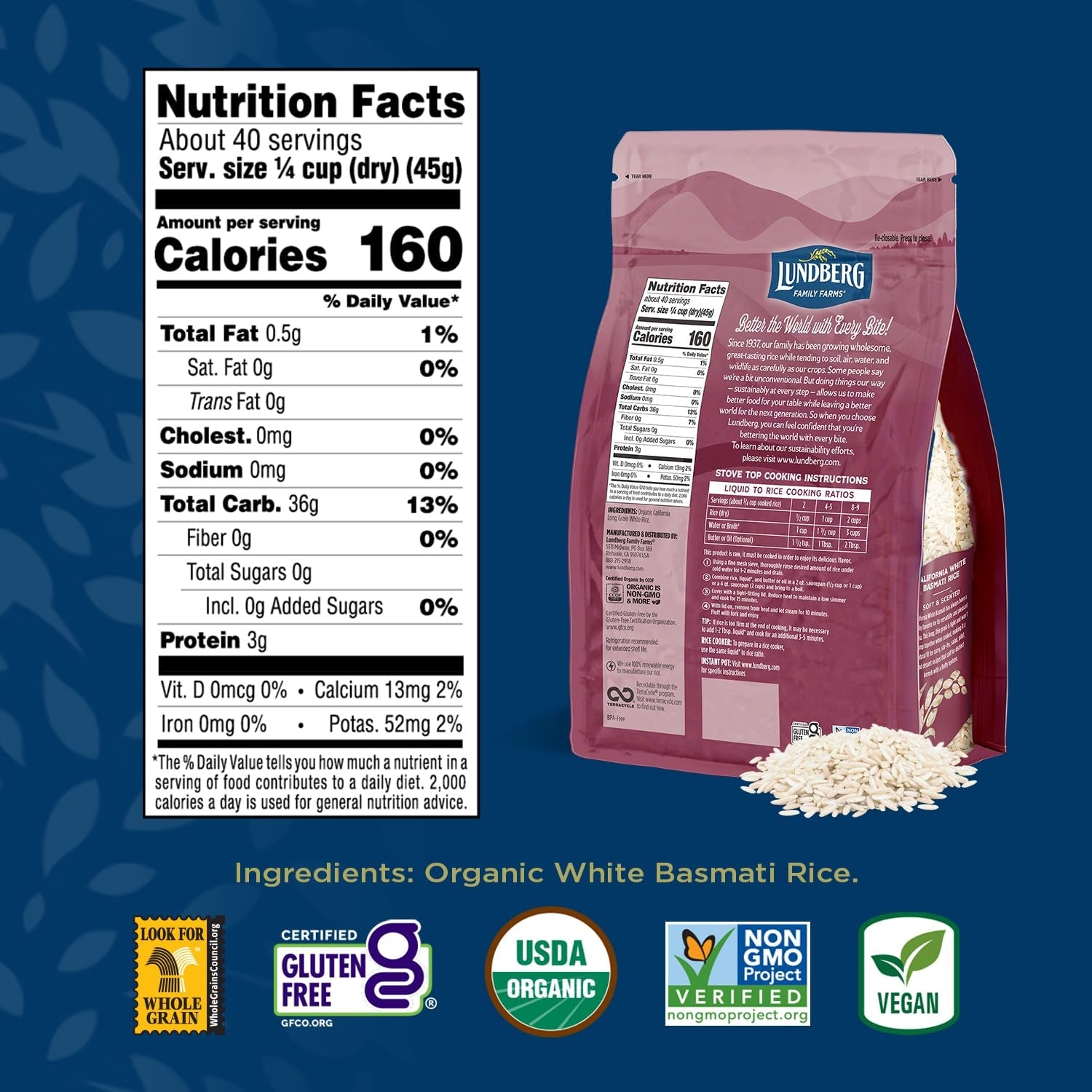 • LUNDBERG RICE FROM CALIFORNIA: This flavorful and aromatic basmati white rice is proudly grown in California by family-owned Lundberg Family Farms.