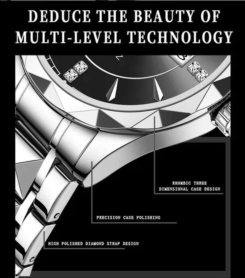 BINBOND Men's Fashion Quartz Watches Ultra Thin Diamond Stainless Steel Watch Waterproof Luminous Wrist Watch