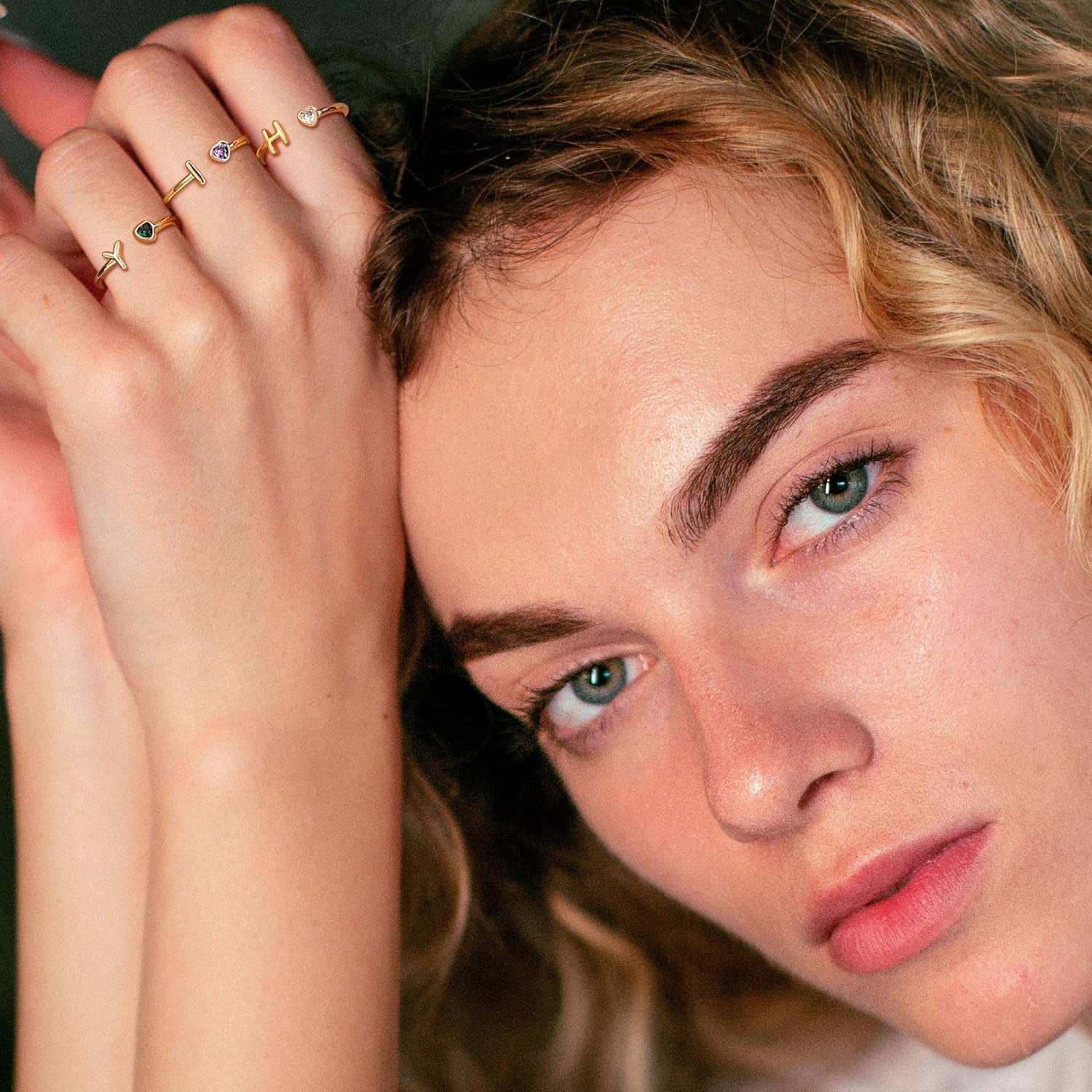 Birthstone Rings for Women 26 A-Z Initial Ring Adjustable 14K Gold Ring Birthday Gifts for Her Rings for Teen Sister Bridesmaid Gifts Dainty Letter Jewelry