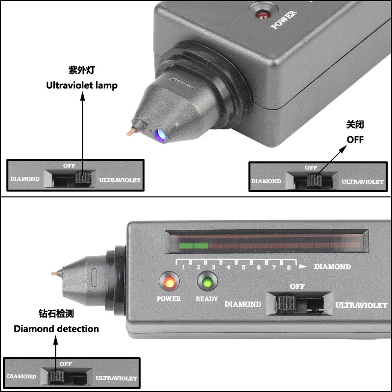 1.Identifies metals, simulants, moissanites, and diamonds instantly.