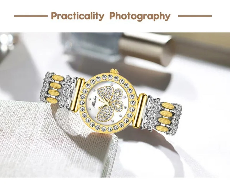 Butterfly Women Watches Luxury Brand Big Diamond 18K Gold Watch Waterproof Special Bracelet Expensive Ladies Wrist Watch