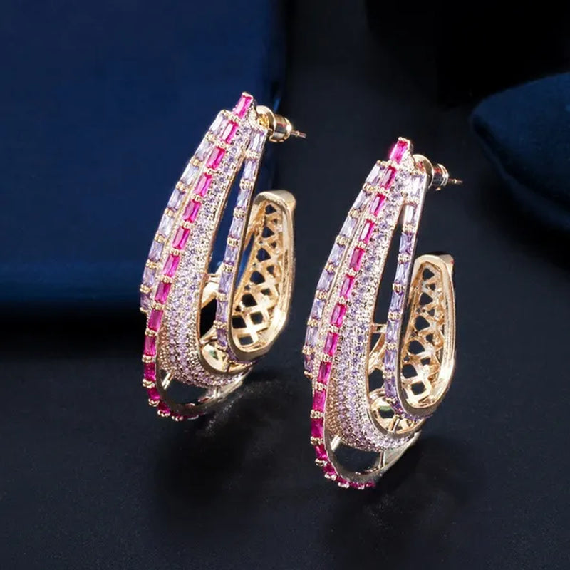 CANDICE Dubai Luxury Trendy Ear Jewelry Full Micro Pave Rose Red Purple CZ Crystal Hollow-out Design Arc Hoop Earrings for Dinner Party